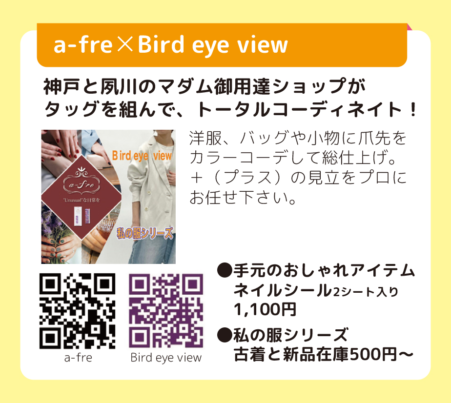 - 洋服販売、ネイルシール販売(bird eye view/a-fre)