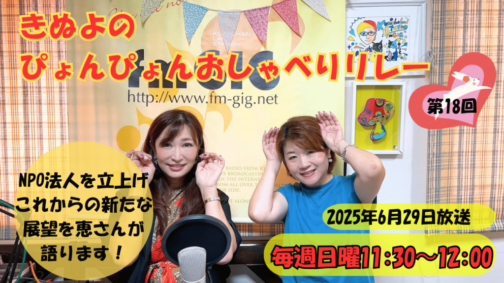 聴き逃された方はYouTubeにてアーカイブの視聴ができます!FMGIGくにちゃんランドステーションのYouTubeチャンネルに「きぬよのぴょんぴょんおしゃべりリレー」もアップされていますので、空いた時間に聴かれたい方はぜひ!