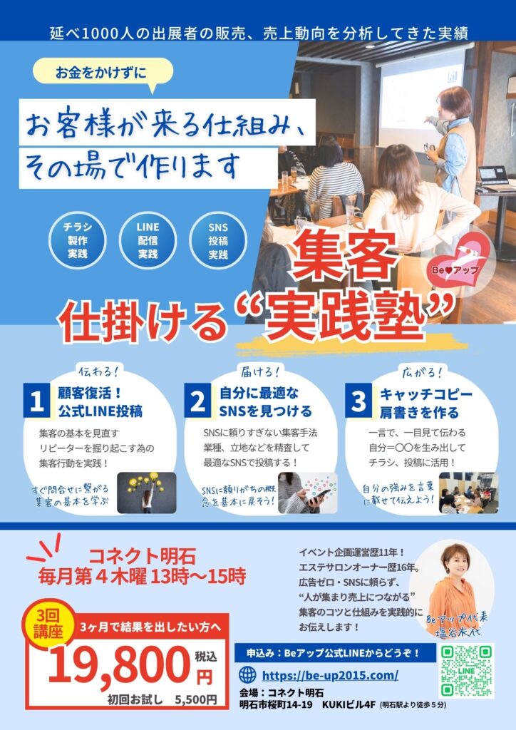 申込:Beアップ公式LINEから「集客実践塾 参加希望」とお送りください。